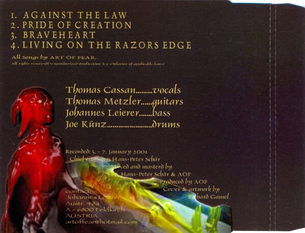 ART OF FEAR (Aus) "Pride Of Creation" MCDReleased by Art Of Fear in 2001Power Thrash MetalListen Here: Youtube