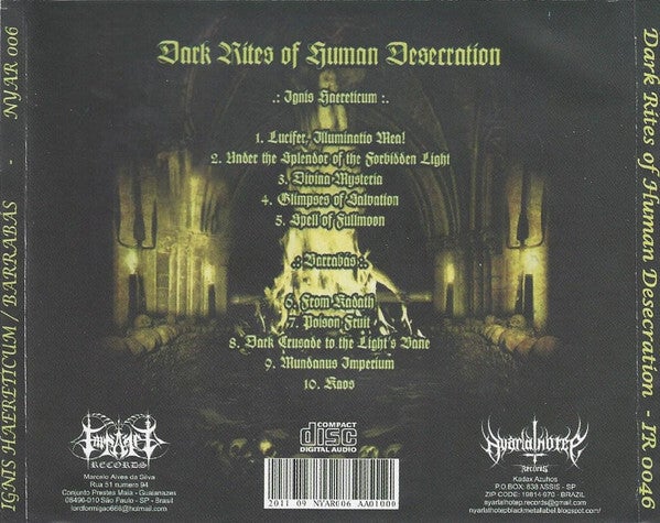 IGNIS HAERETICUM (Col) / BARRABÁS (Bra) "Dark Rites of Human Desecration" Split CD