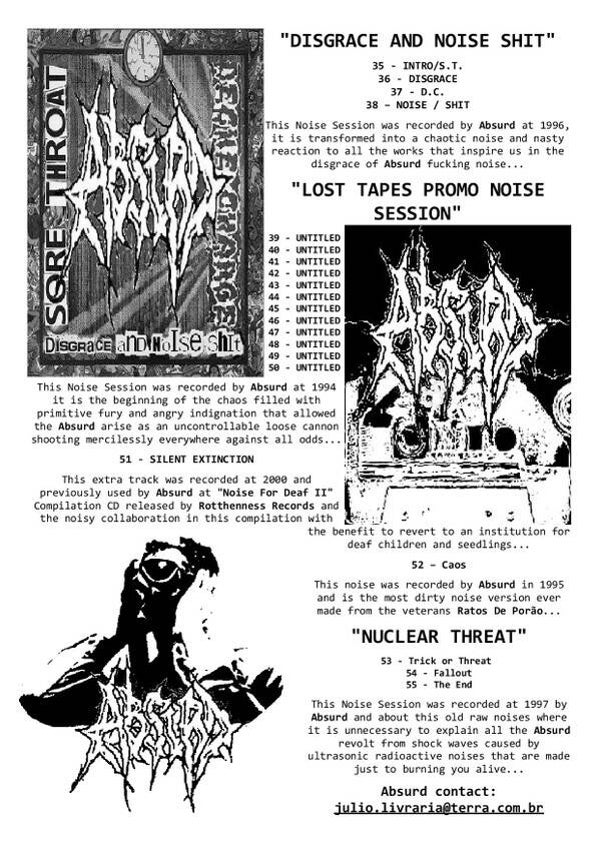 ABSURD (Bra) "Complete Noise... Absurd Shit..." Cassette + Poster A4Released by Murder Records in 2019NoisecoreListen Here: Youtube