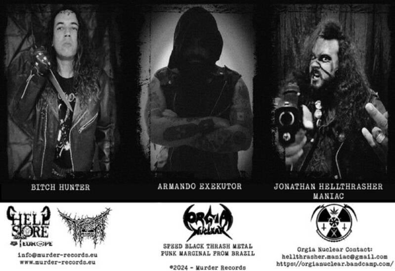 After three years from the initial date for this release to see the light of day, Murder Records now has the honor of announcing its return to activities and for that we are going to pick up where things left off and we are honored to finally present the release of the reissue on cassette of ORGIA NUCLEAR's first album, an infamous project that emerged from the diabolical mind of the profane Jonathan Hellthrasher Maniac, an explosive creature from the nauseating Brazilian underworld. "O Retorno Do Caos Total A Exterminação Completa" are the apocalyptic extilations of the first record "Caos Total" that ORGIA NUCLEAR originally released in 2012, being fully re-recorded by Armando Exekutör in his gutarra, where he executes us with his desimating solos. Bitch Hunter with his bass guitar that butchers us with the spacing of a fearless drums, while we are shot with the bass of Jonathan Hellthrasher Maniac who is also responsible for the blasphemous vomits and a whole explovive concept in constant destructive chaos for a total extermination. Complementing this with an Intro and three more songs never released, compositions made at that time and today in aconcistent way gain a totally independent form with a Rock N Hell rebellion in this new album of ORGIA NUCLEAR, mixing and mastering by Bitch Hunter in 2020 and that is now presented here to smash you against a wall. There were many cycles and challenges that ORGIA NUCLEAR faced over the years, but always writing their history in a dignified and authentic way, without selling out or surrendering to the miserable stardom that infests the Underground and to which many end up selling themselves! The real ORGIA NUCLEAR ideals have always been against this kind of attitudes and they intend to continue spreading chaos, stepping on the heads of the weak, with musical perversity, keeping a marginal and aggressive line in their lyrics, ideas of revolt, visions of horror about this world and its submissive humanity. Even with all that, there were never any barriers that couldn't be broken or blown up in order to follow the march of chaos and Thrash Metal explosion. Over the years ORGIA NUCLEAR has managed to create its own genre that we can include in the true Speed Black Thrash Metal Punk Marginal that will explode your brain.